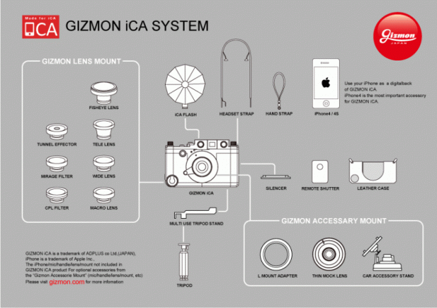 カメラで最も重要なレンズやCCD、確認用の液晶部分は、既にiPhoneという非常に優れた製品があり、これが普及しているので、自社開発はせず、このiPhoneを部品として使い、レンズやフラッシュ、ケース、三脚を取り付ける固定部分とライカ風の外観だけを自社で開発しよう、というコンセプトの製品なのだ。