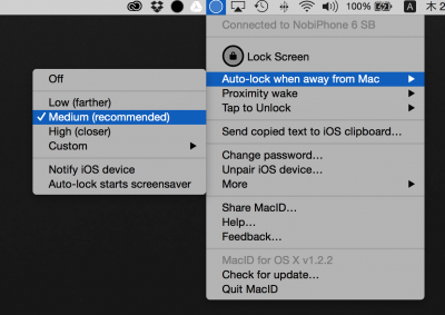 なお、iPhoneを持って、Macから離れると自動的にMacをロックする機能なども搭載しています。